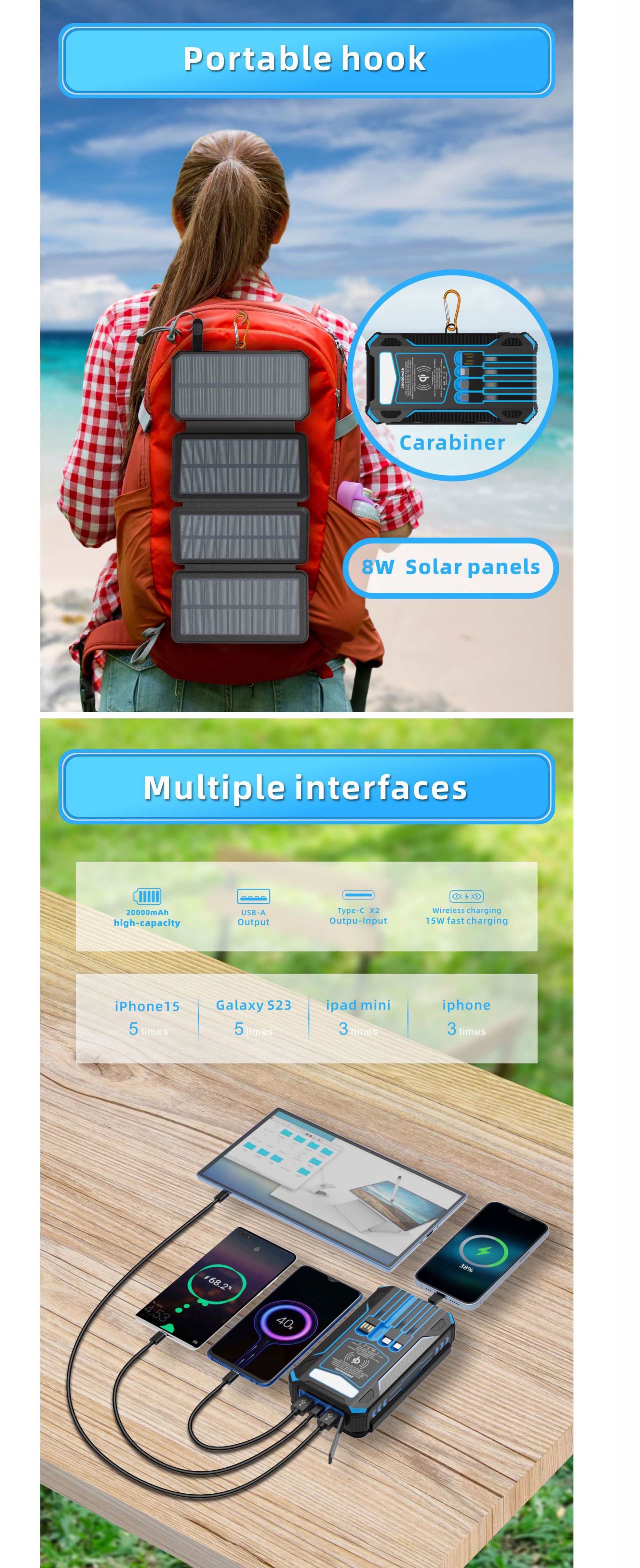 EVRSK8 Solar Power Pack: Three Fold Bank Folding Outdoor Portable Large Capacity Mobile Power Supply
